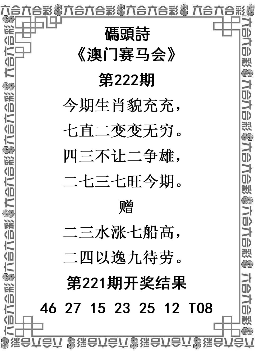 上篇:223期澳門碼頭詩
