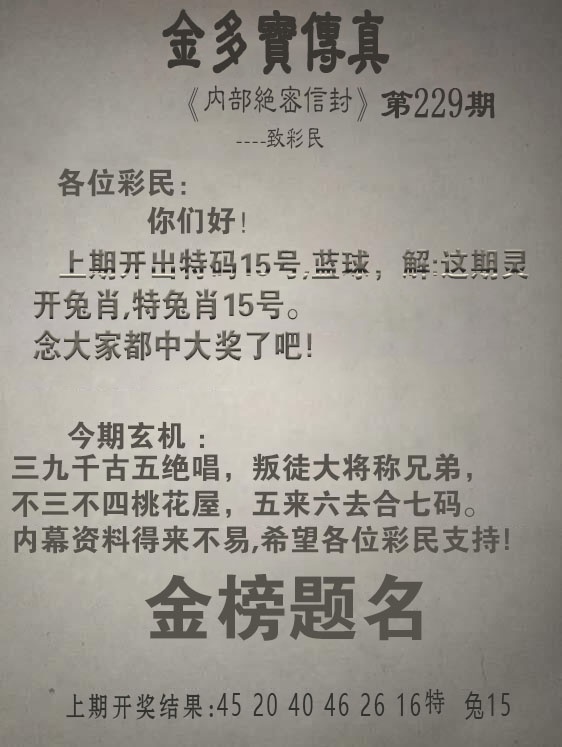 229期金多寶傳真