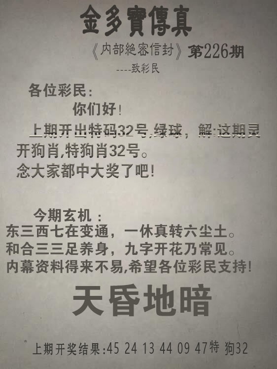 上篇:227期金多寶傳真